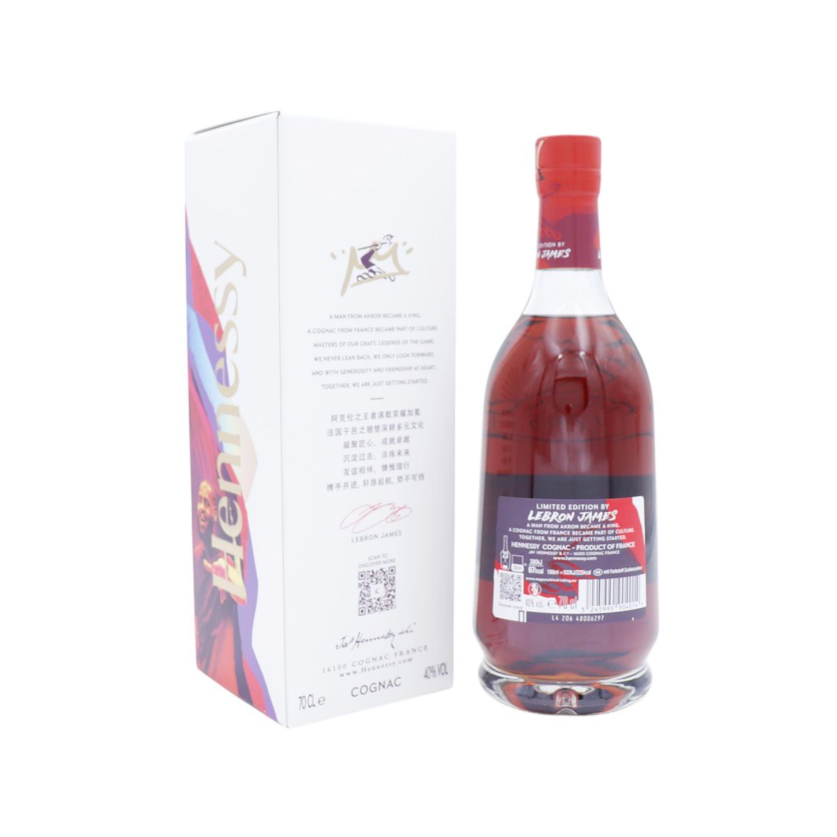Hennessy est fier de présenter la collection "Hennessy Limited Editions by LeBron James", une collaboration unique entre la Maison Hennessy et la star du basketball, LeBron James. Lancée le 26 septembre 2024, cette édition limitée célèbre l’alliance entre l’élégance intemporelle du cognac et l’héritage du sport, en créant une fusion visuelle et culturelle entre ces deux univers iconiques.